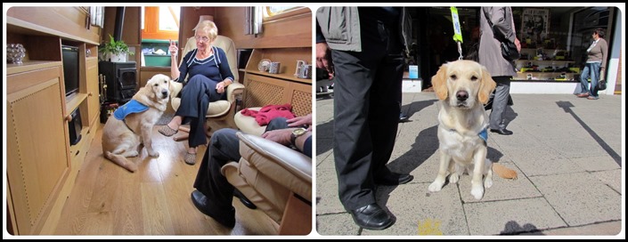 Just around the corner we bumped into Sue and Norman two of our fellow puppy walkers from home who were here on a day trip with friends. We could not resist making a fuss on their gorgeous pup Jasmine who was sponsored by a Garden centre. Later Norman and Jasmine stopped by the boat for tea and biscuits whilst the girls went shopping.